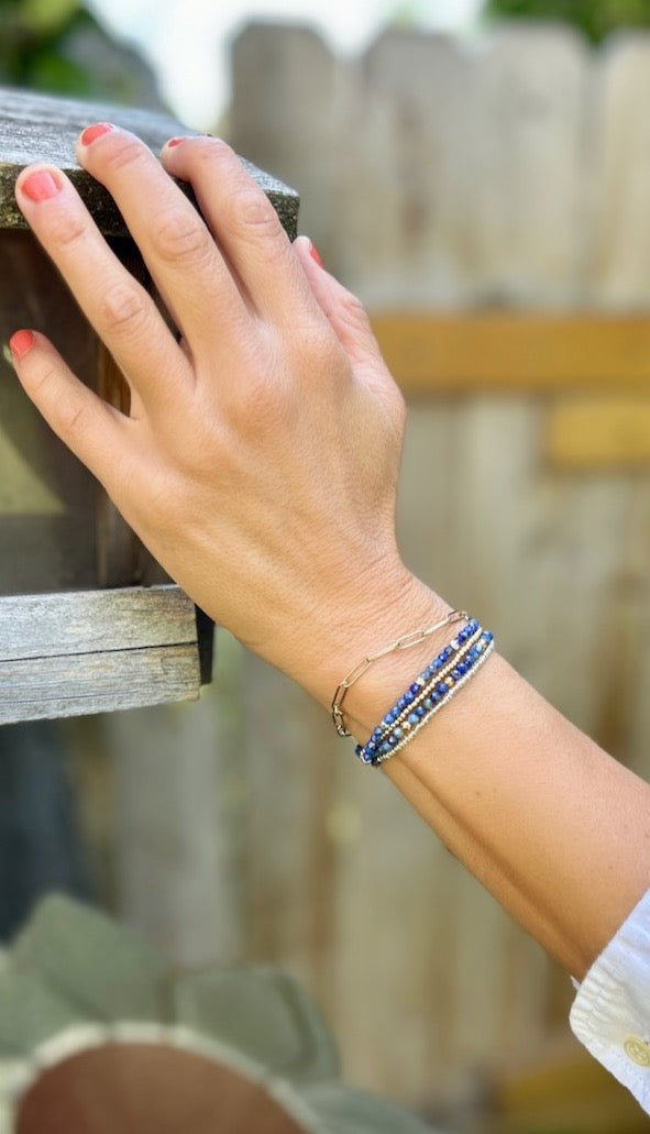 Seaside Blues & Navy Tila Bead Stacked Bracelet Set