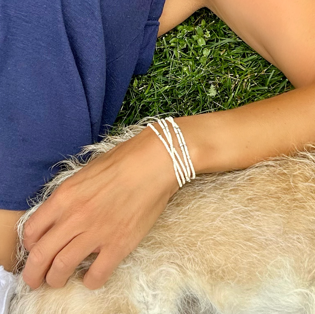 Everyday Boho Seed Bead Bracelet – Stretchy Mustard Yellow & White Wrap Design