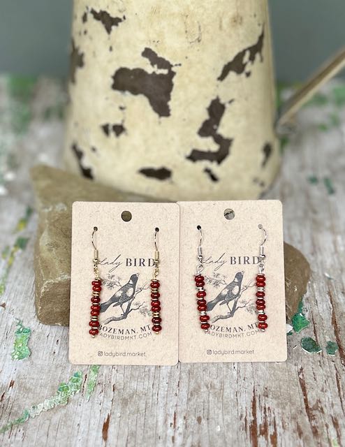Lady Bird’s Tila bead dangle earrings are crafted with Japanese glass tile beads in vibrant or neutral tones, creating the perfect lightweight boho earrings for everyday wear