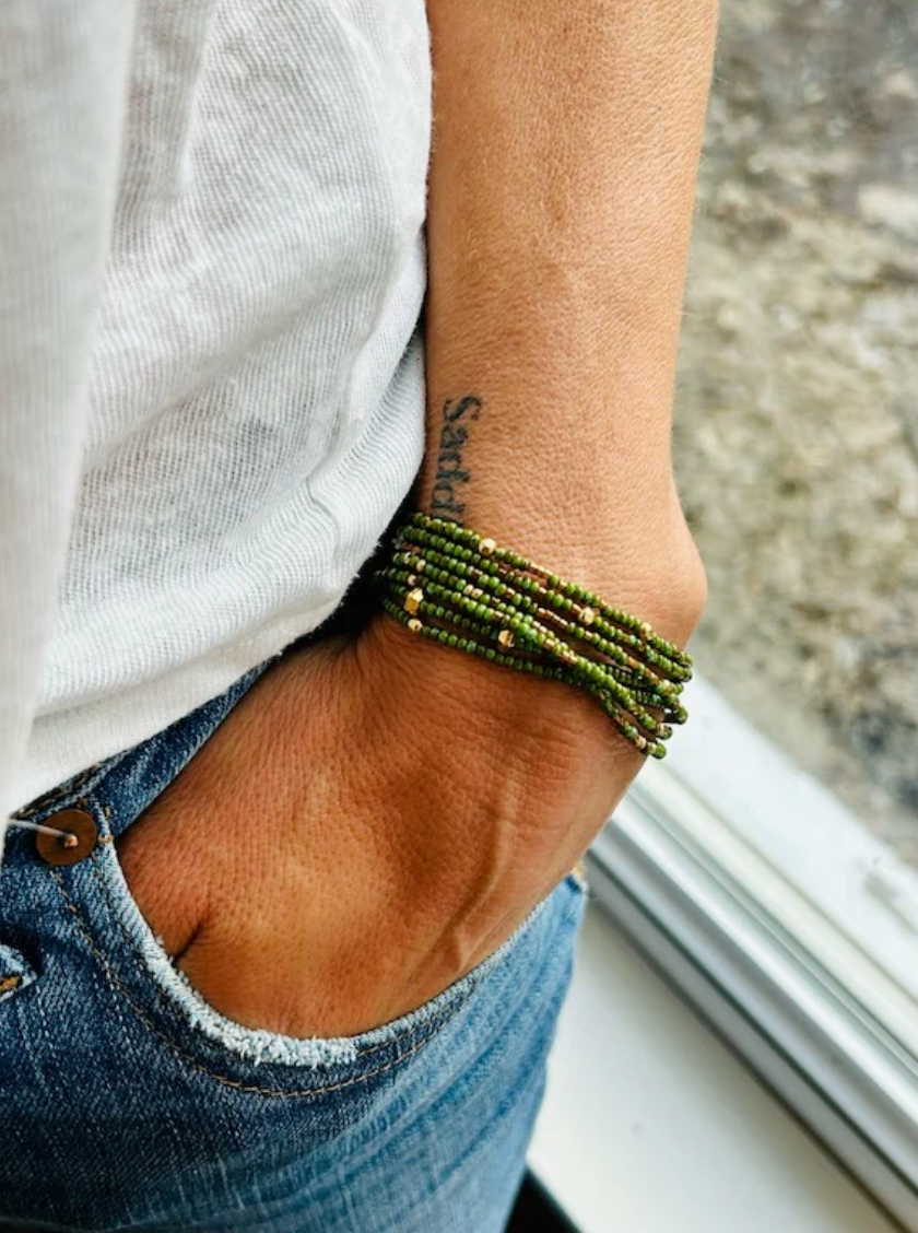 Greens Browns & Gold 5-Wrap Seed Bead Wrap Stack Bracelet