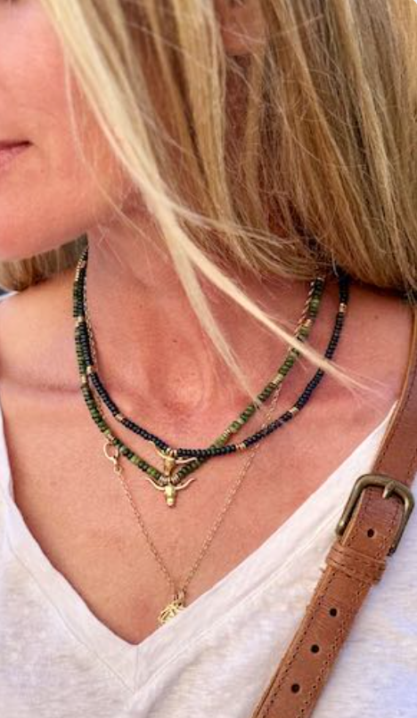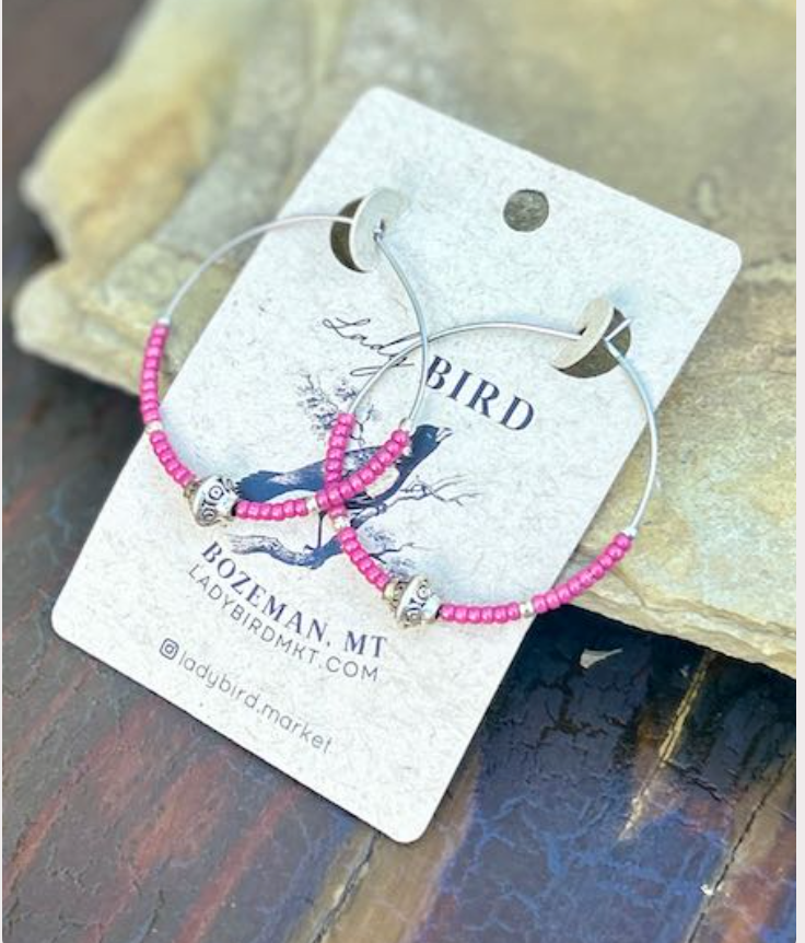 A lifelong hobby crafter and creative based in Bozeman, Montana, Corinne Garcia explored everything from leatherwork to hand-painted signs before discovering beading — an art form that captivated her with its endless variety of colors, textures, and possibilities. What began as a passionate hobby quickly evolved into a full-time pursuit. In 2020, she founded Lady Bird to share her handcrafted beaded jewelry with a wider audience.