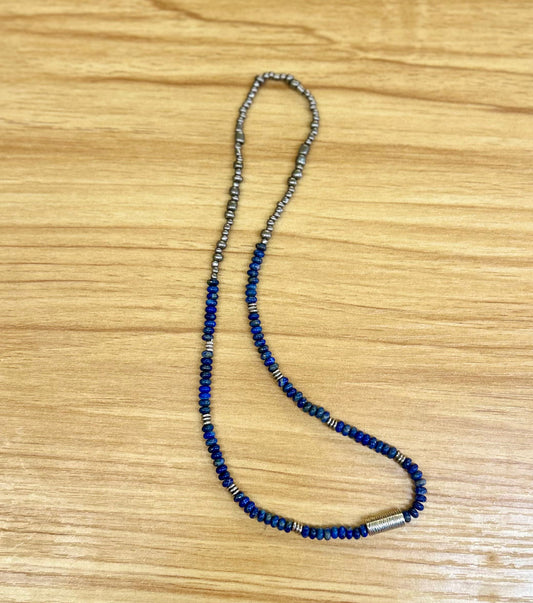 Lapis Lazuli Gemstone Stretchy Necklace – Boho Jewelry with Silver Bar Pendant