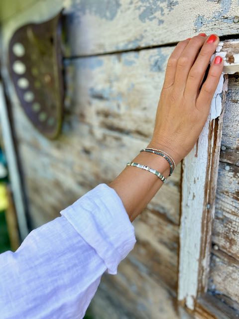 Beach Bum with Grey Stretchy Tila Bead Bracelet Set