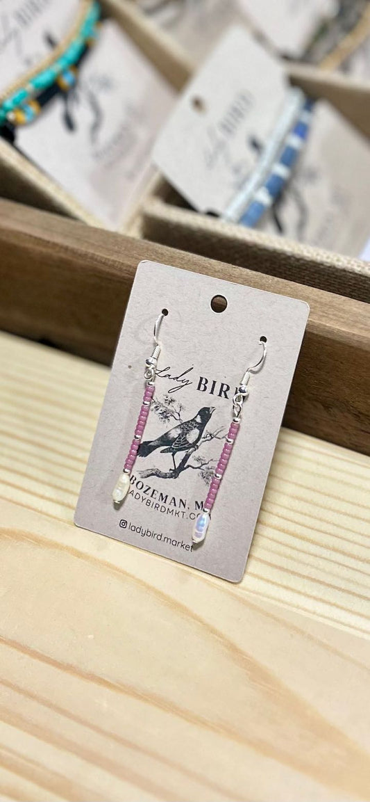 Pale Pink Seed Bead & Freshwater Pearl Dangle Earrings