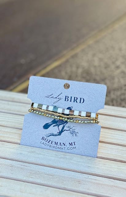 Muted Gold & White Striped Tila Bead Stacked Bracelet Set