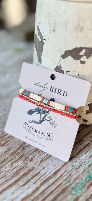 Southwestern Red Patterned Tila Bead Bracelet Set | Handmade Stretchy Boho Wrap
