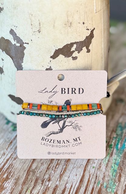 Sunflower Yellow & Teal Harvest Tila Bead Stacked Bracelet Set | Handmade Boho Stretch Wrap in Silver or Gold