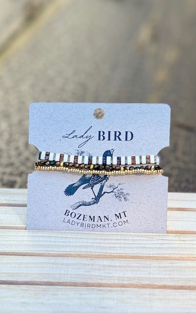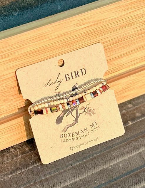 Autumn Mix & White Tila Bead Bracelet Set | Handmade Boho Stacked Stretch Bracelets in Silver or Gold