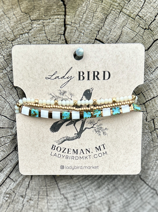 Tila Set Speckled Turquoise & White Wrap Bead Bracelet