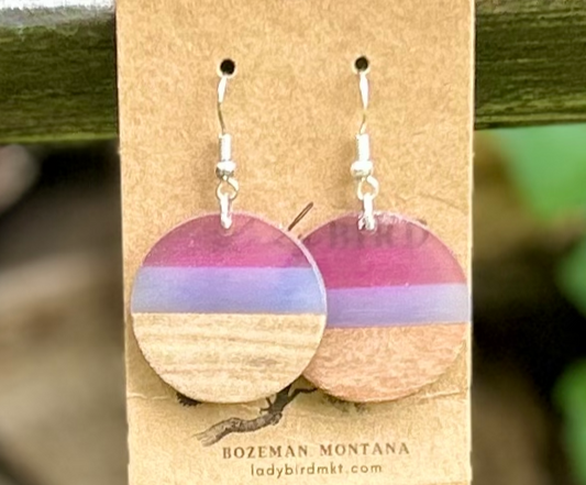 Walnut Wood & Purple Mixed Resin Circle Earrings