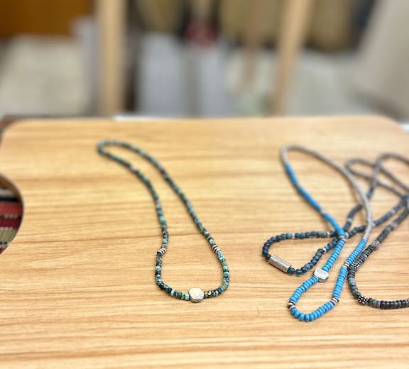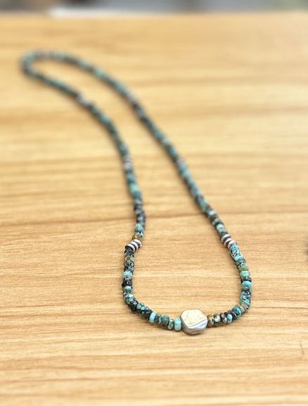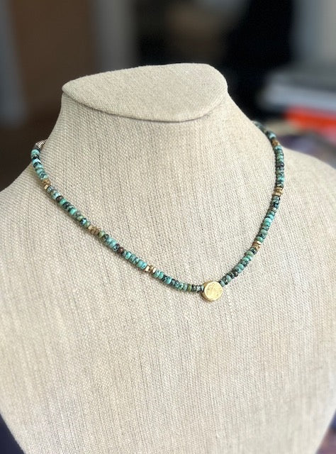 African Turquoise Stretchy Boho Necklace with Gold or Silver Circle Pendant – Gemstone Jewelry