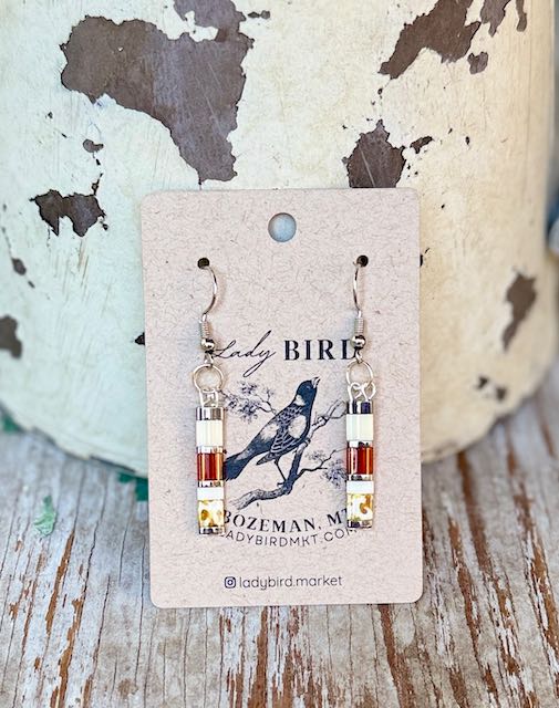 Amber Autumn Mix & White Tila Bead Earrings | Handmade Boho Dangle Earrings in Silver or Gold