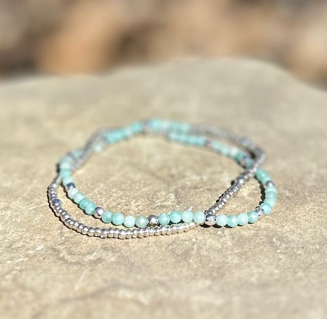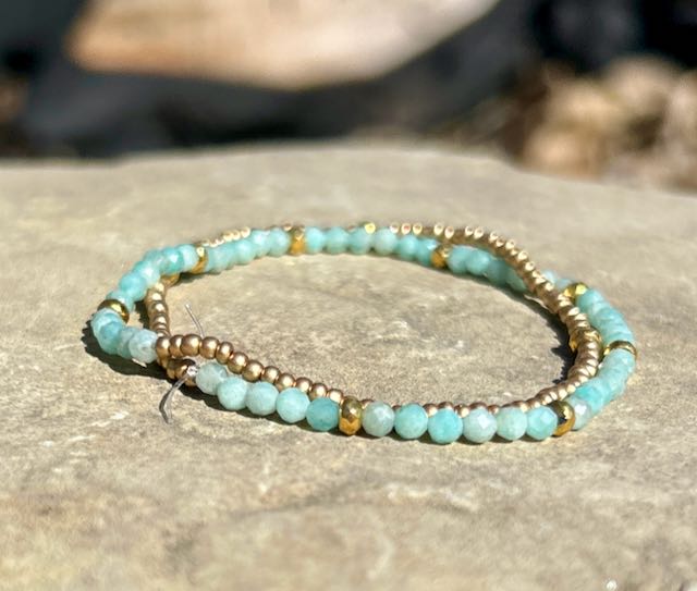 Amazonite & Gold or Silver Stretchy Gemstone Wrap Bracelet
