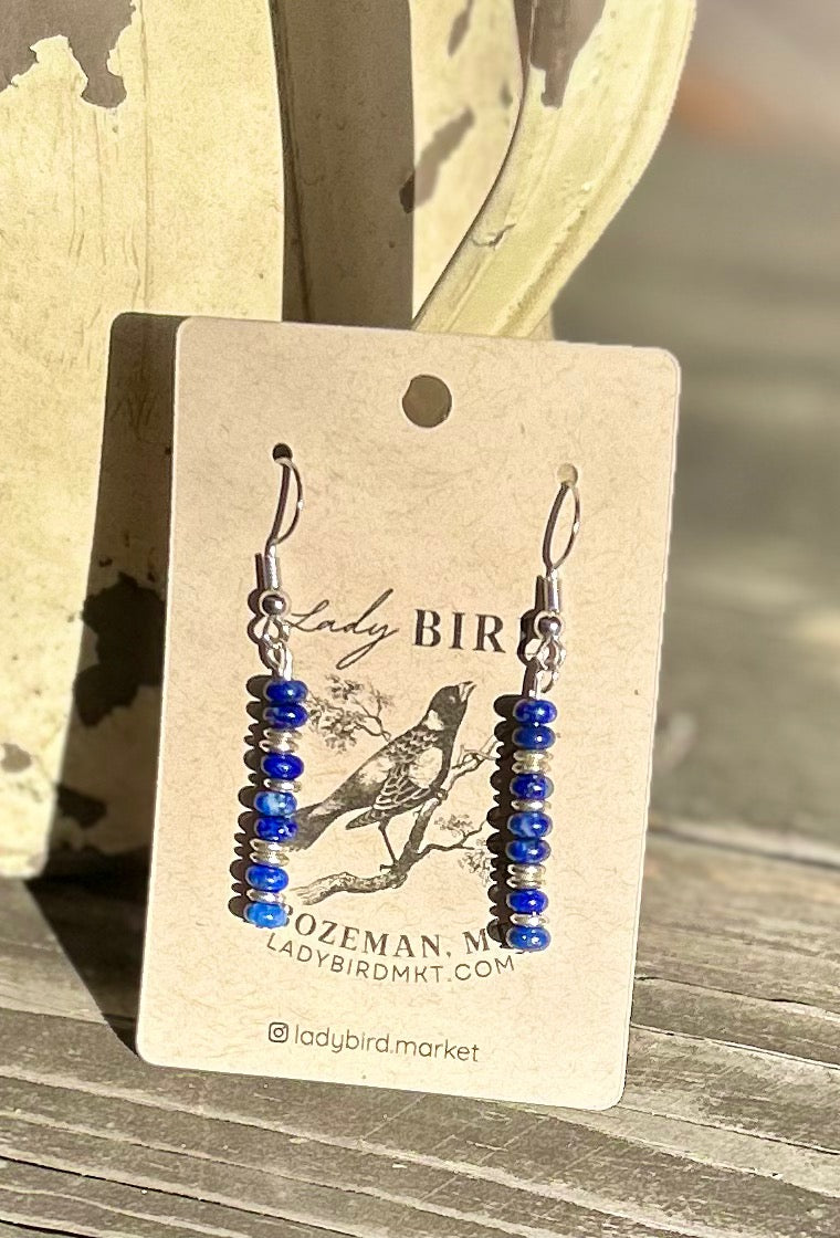 Blue Lapis & Silver or Gold Gemstone Dangle Earrings