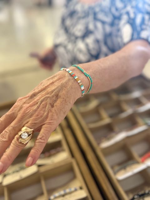 Each bracelet set is handmade with a unique mix of glass beads, so colors and patterns may vary slightly—making every piece truly one of a kind.
