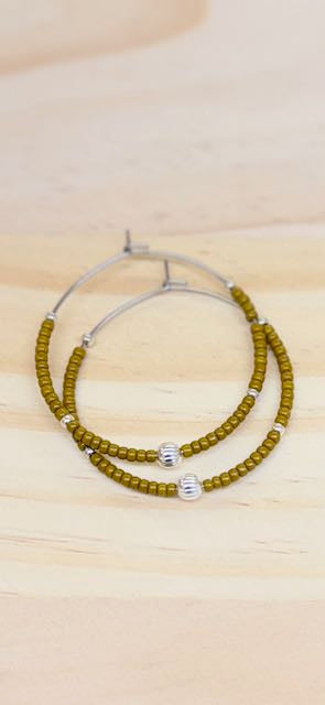 Boho Mustard Yellow & Silver Beaded Hoop Earrings