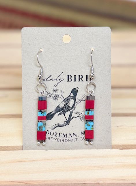 Southwestern Boho Earrings – Brick Red & Turquoise Tila Beads in Gold or Silver