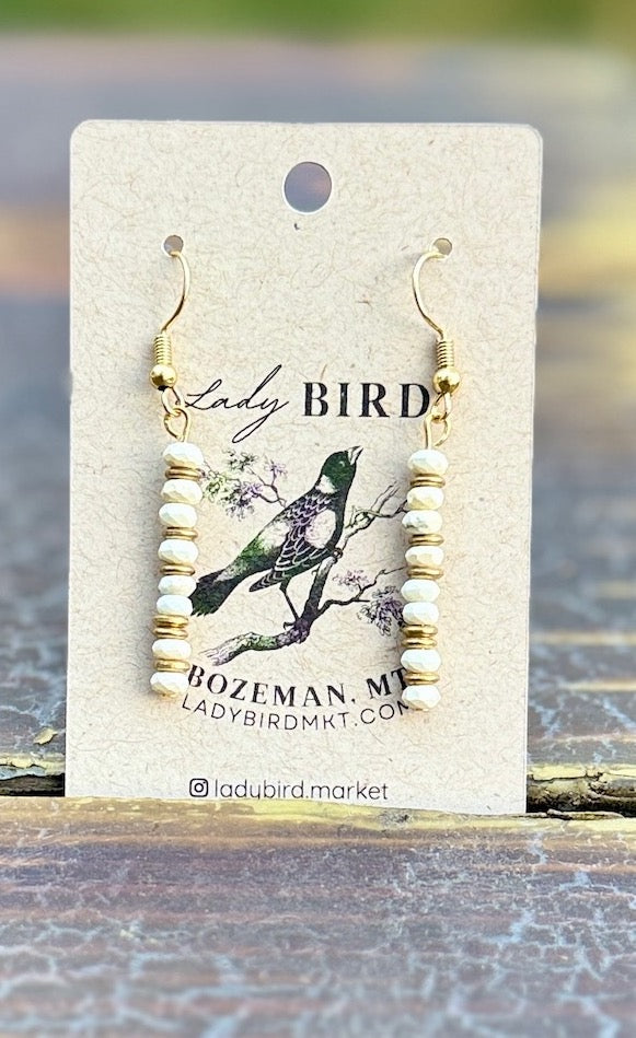 Bright White Magnesite Cairn Beaded Gemstone Earrings – Gold or Silver
