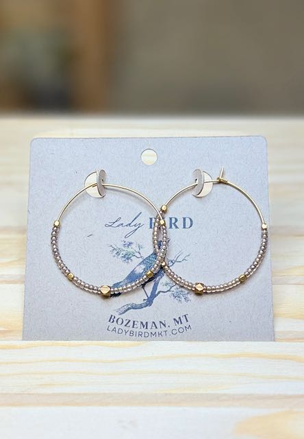 Perfect for boho style and effortless, casual elegance, these Sparkling Champagne and Gold beaded hoops are your new go-to accessory. Made with premium Czech glass seed beads, they bring that perfect mix of nature-inspired color and sophisticated shine.