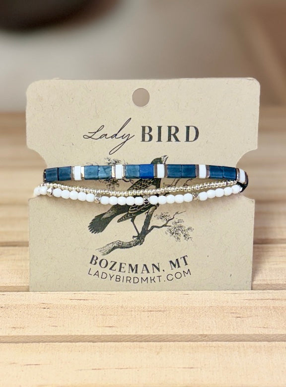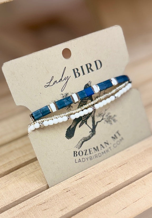 Classic Navy & White Tila Bead Stacked Bracelet Set