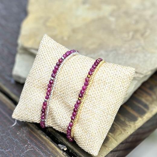 Ruby with Gold or Silver Stretchy Gemstone Wrap Bracelet