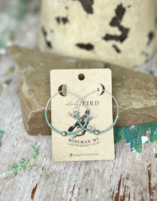 Sage Green & Silver Globe Beaded Hoop Earrings