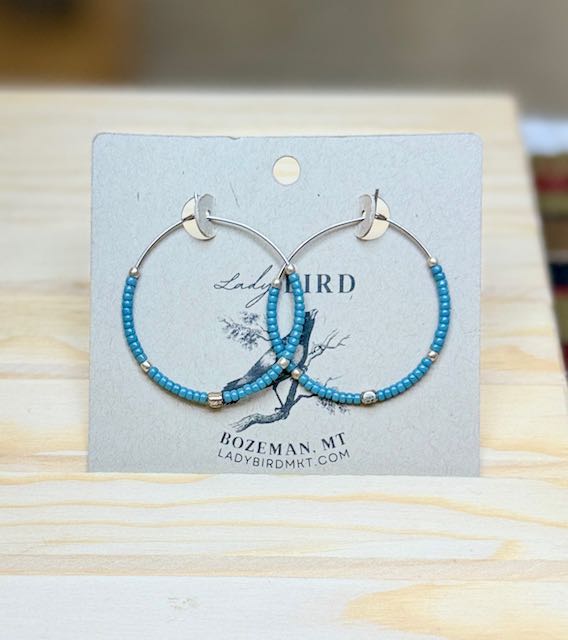 Pale Sky Blue with Silver accent Boho Seed Beaded Hoop Earrings