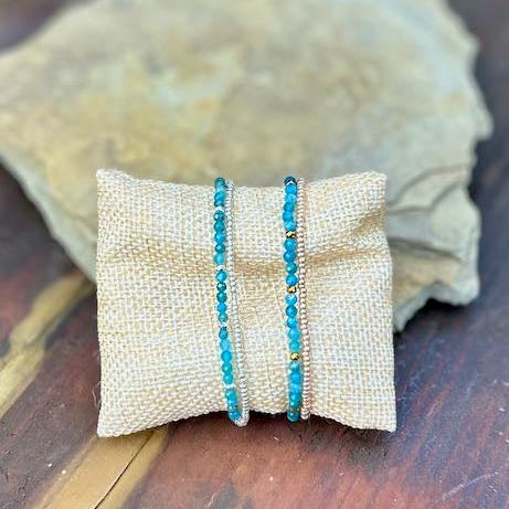 Blue Apatite with Gold or Silver Stretchy Gemstone Wrap Bracelet