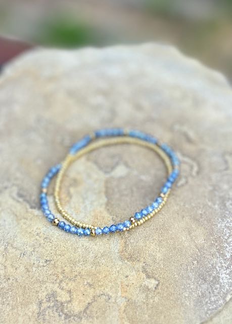 Light Blue Zircon with Gold or Silver Stretchy Gemstone Wrap Bracelet