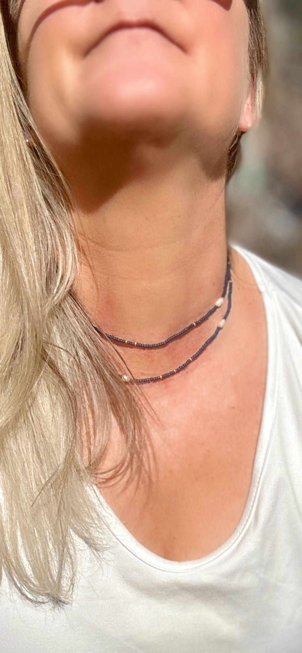 Matte Black 2-in-1 Seed Bead & Freshwater Pearl Bracelet/Necklace