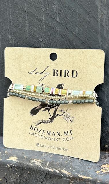 Mellow Meadow Patterned Tila Bead Stacked Bracelet Set