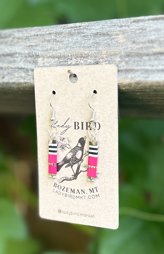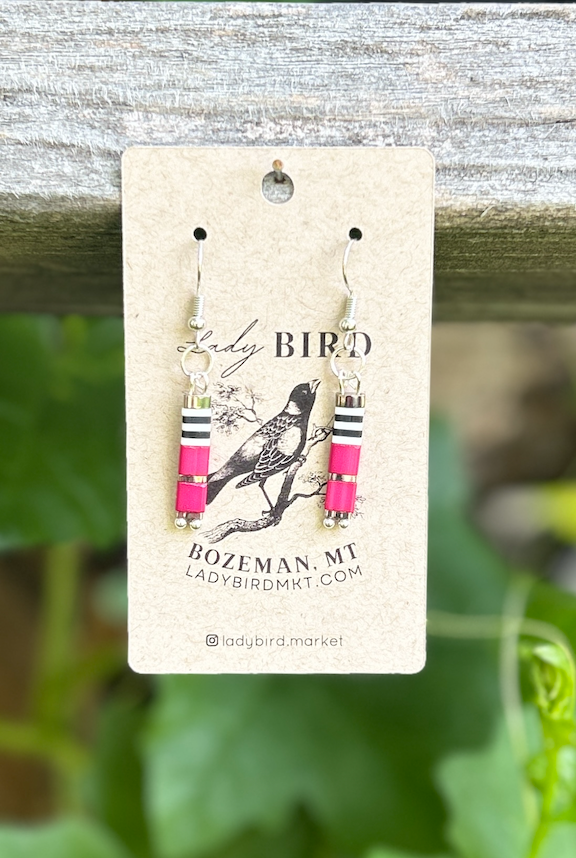 Pomegranate Pink Zebra Striped Tila Bead Dangle Earrings
