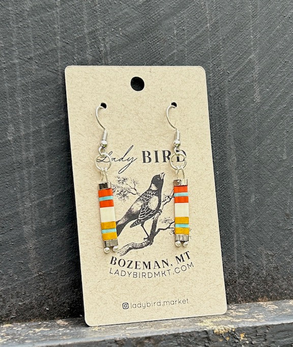Retro Orange Stripes with Silver or Gold Tila Bead Earrings