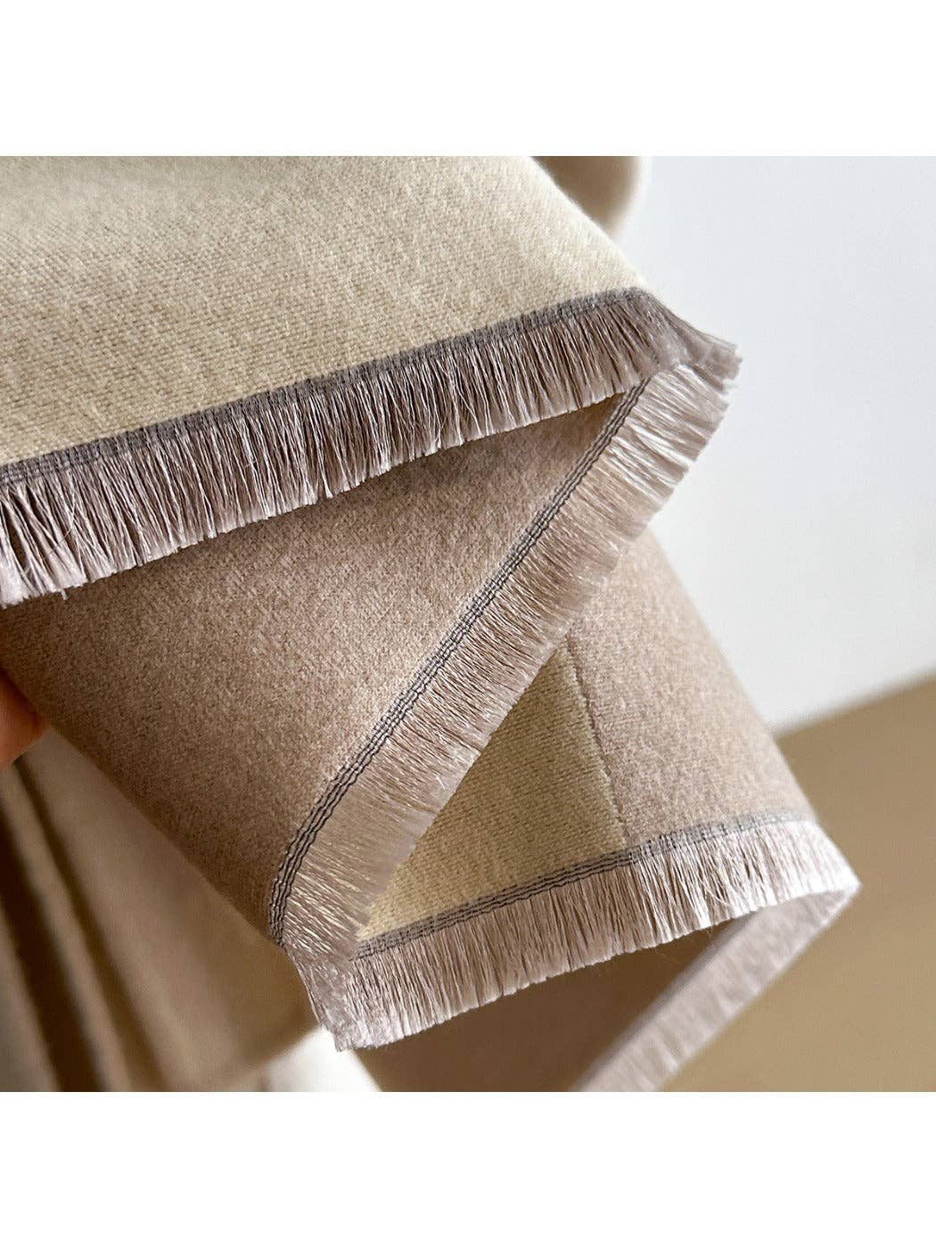 Made from soft polyester with a smooth, cozy feel, it gives you lightweight warmth without the bulk. The oversized shape lets you wrap it up as a scarf or drape it as a shawl, while fringe edges add movement and just the right amount of texture.
