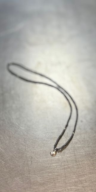 Add effortless charm to your look with this handmade boho beaded necklace, crafted with steel gray Czech glass seed beads and accented with silver beads. Designed on durable elastic cording, this stretch seed bead necklace slips easily over your head—no clasp needed.