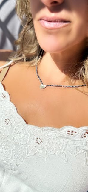 Each minimalist seed bead necklace is thoughtfully made, with subtle boho style and lightweight comfort in mind. The silver or gold pendants reflect organic shapes and calming symbols from the natural world, curated to complement the bead palette and elevate the overall aesthetic.