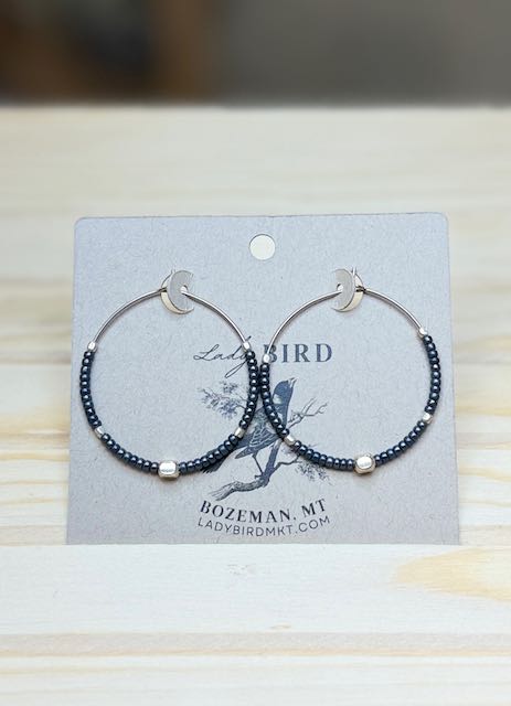 Perfect for boho style and effortless elegance, these Steel Grey and silver beaded hoops are your new go-to accessory. Made with premium Czech glass seed beads, they bring that perfect mix of nature-inspired color and sophisticated shine.