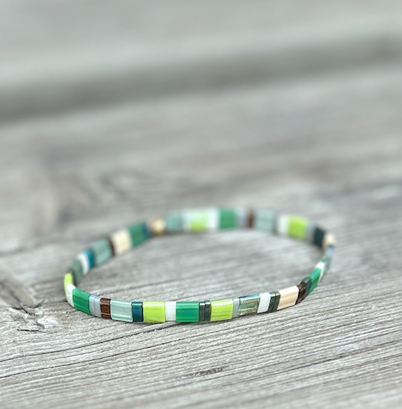 Grassy Meadow Stretchy Tile Beaded Bracelet Stack