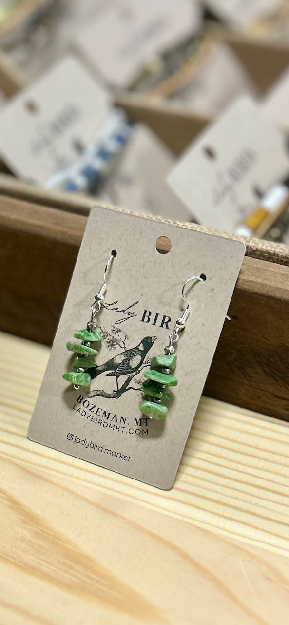 Our gemstone dangle earrings are all about easy, everyday Boho-style. Made with natural gemstone beads, each set comes with either silver or gold accent beads to suit your personal taste. Pair it with one of our stretchy gemstone necklaces for a complementary set. Earring hardware is silver-plated brass and contains no nickel.