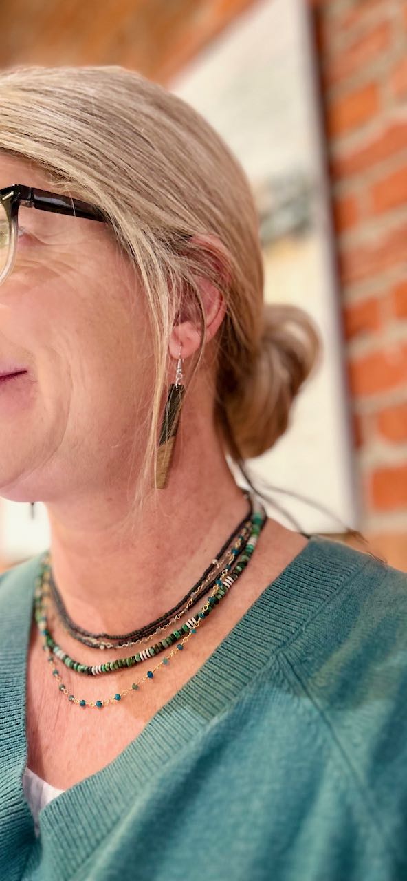 Made from walnut wood and jet black resin, these rectangle pendant earrings are approximately 2 inches long, and lightweight and versatile for a simple, nature-inspired, free-spirited look. The natural wood grain adds an earthy quality to these dangle earrings and is a perfect contrast to the colors in the resin. Choose between silver or gold hardware.