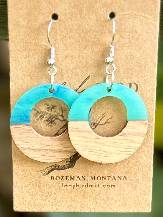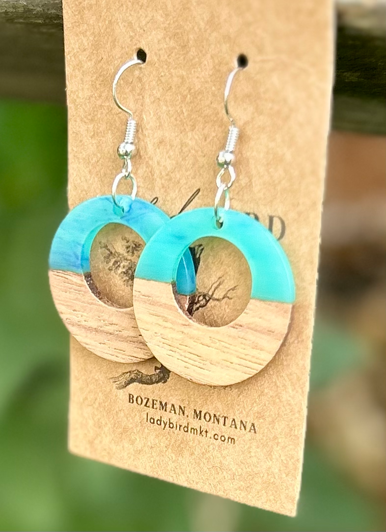 Walnut Wood & Turquoise Resin Hoop Earrings