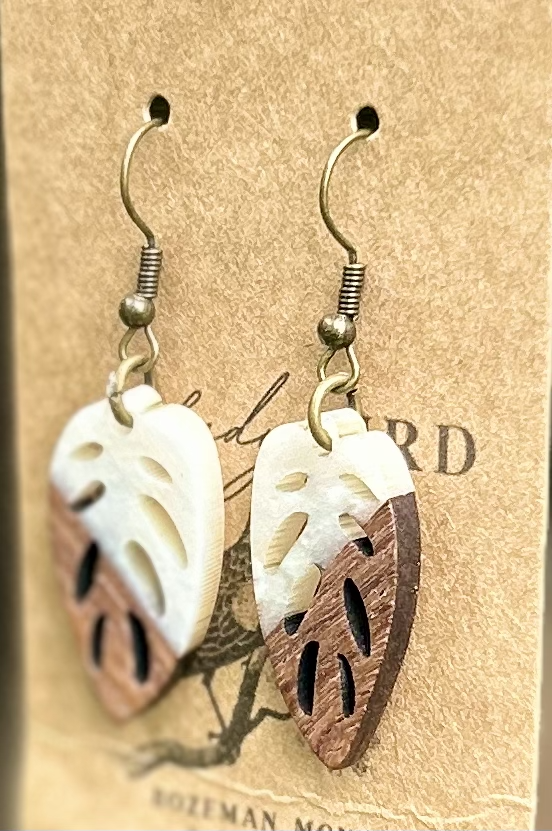 Walnut Wood & White Resin Leaf Earrings
